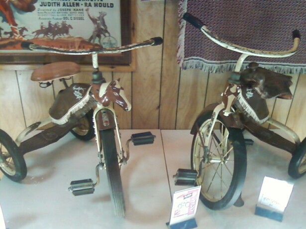 This was my favorite display. The Gene Autry bicycles and trykes are just too cute.